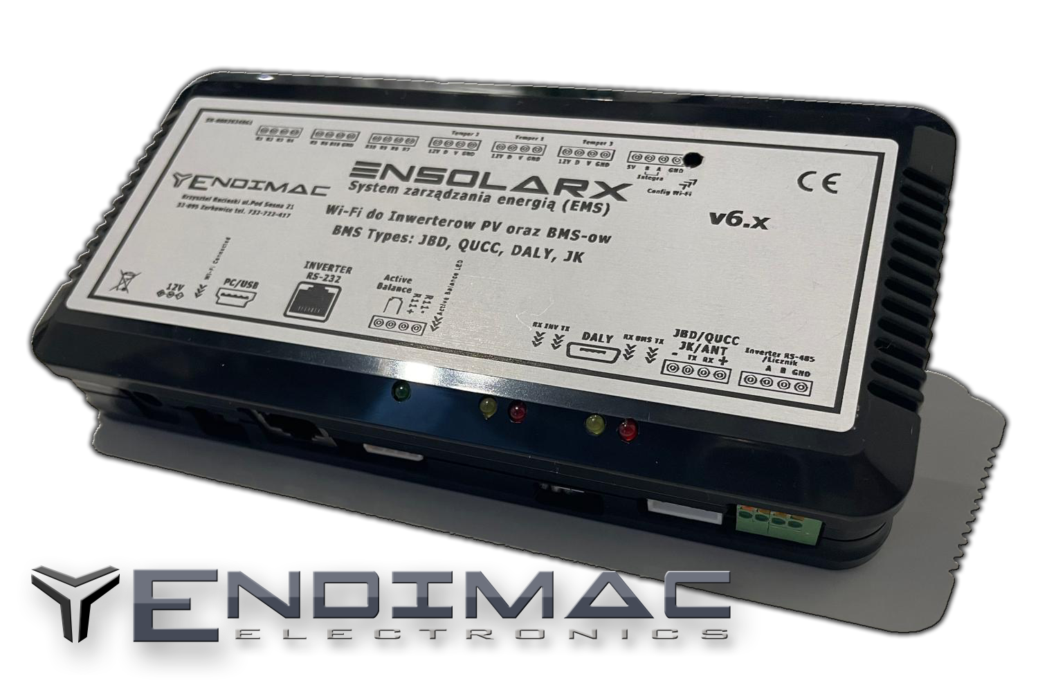 Podłączenie Falownika oraz BMS-a z modułem ENSolarX realizowane jest przez magistrale RS-232 lub RS485. Urządzenie posiada 2 osobne wejścia do obsługi Falownika oraz BMS-a.