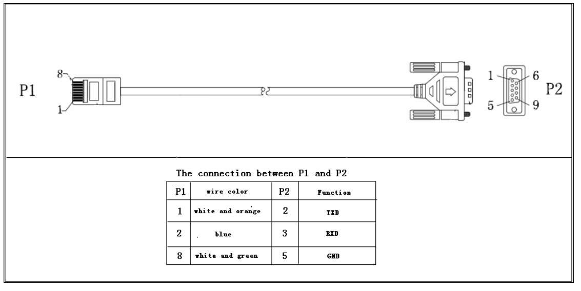 Jeśli falownik jest wyposażony w złącze RJ45 to taki przewód jest w zestawie, natomiast jeśli falownik jest wyposażony w złącze DB9 to taki przewód można wykonać samemu, Poniżej przedstawiono schemat przewodu do niektórych falowników ze złączem DB9.