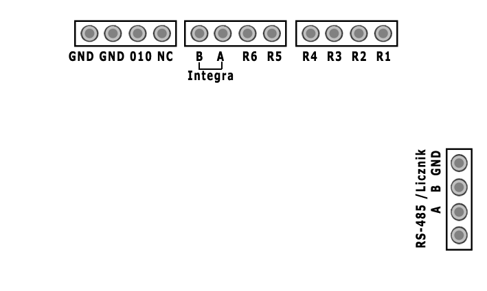A – B Wyjście MODBUS do integracji z aplikacjami do inteligentnego zarzadzania domem np. Home Assistant.