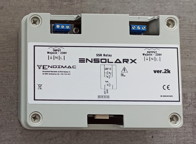 Przekaźnik SSR , zaprojektowany specjalnie do współpracy z systemem ENSolarX. Umożliwia płynne sterowanie mocą grzałki z bufora ciepła na podstawie sygnału 0–10 V generowanego przez ENSolarX.
